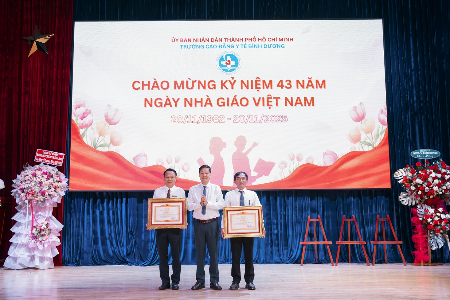 Nhân dịp 20/11, Trường Cao đẳng Y tế Bình Dương kính chúc quý thầy cô và gia đình nhiều sức khỏe, bình an, hạnh phúc và luôn tràn đầy năng lượng để tiếp tục đồng hành cùng Nhà trường trong sự nghiệp trồng người cao quý, góp phần xây dựng thế hệ cán bộ y tế tương lai vừa “có tâm, có tầm, vừa giỏi nghề và giàu lòng nhân ái”.