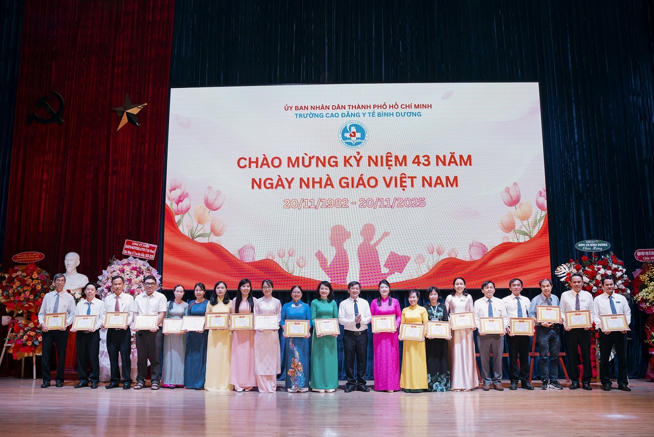 Nhân kỷ niệm 43 năm Ngày Nhà giáo Việt Nam (20/11/1982 – 20/11/2025), Trường Cao đẳng Y tế Bình Dương long trọng tổ chức lễ kỷ niệm nhằm tri ân những đóng góp bền bỉ của đội ngũ thầy giáo, cô giáo, cán bộ, viên chức và người lao động – những người đã và đang giữ vai trò then chốt trong sự nghiệp đào tạo nguồn nhân lực y tế cho tỉnh nhà và khu vực. Đây là dịp để Nhà trường nhìn lại hành trình xây dựng và phát triển, đồng thời gửi lời cảm ơn sâu sắc đến những đóng góp âm thầm nhưng vô cùng ý nghĩa của các thế hệ thầy cô.
