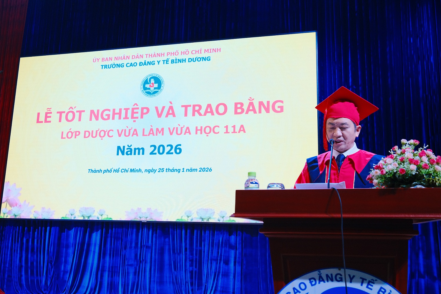 Sáng ngày 25/01/2026, trong không khí phấn khởi của những ngày đầu xuân, Trường Cao đẳng Y tế Bình Dương đã long trọng tổ chức Lễ Tốt nghiệp và trao bằng cử nhân cho sinh viên lớp Dược Vừa làm vừa học 11A. Đây là sự kiện quan trọng, đánh dấu mốc trưởng thành của các học viên sau chặng đường nỗ lực học tập và rèn luyện không ngừng nghỉ.