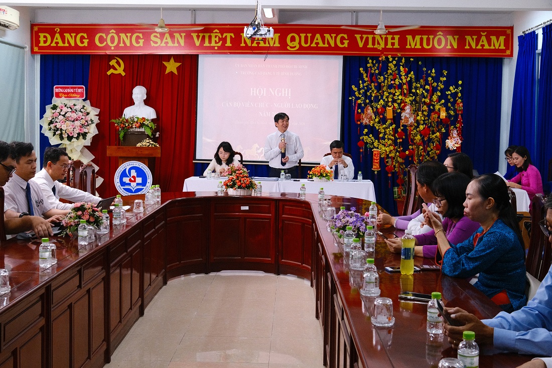 Hội nghị là hoạt động mang ý nghĩa chính trị – xã hội sâu sắc, thể hiện rõ tinh thần dân chủ, đoàn kết và trách nhiệm trong toàn Trường. Đây đồng thời là dịp quan trọng để Nhà trường tổng kết, đánh giá toàn diện việc thực hiện nhiệm vụ năm 2025; kiểm điểm việc thực hiện quy chế dân chủ trong cơ sở giáo dục; rà soát quá trình triển khai các chủ trương, nghị quyết của Đảng, chính sách pháp luật của Nhà nước; Kiểm điểm việc thực hiện chỉ đạo của UBND tỉnh Bình Dương (cũ), thành phố Hồ Chí Minh (mới) và các sở, ngành liên quan, gắn với sứ mệnh đào tạo và bồi dưỡng nguồn nhân lực y tế phục vụ địa phương.